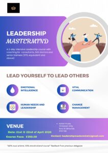 Welcome to our transformative 2-day Leadership Course, on Tuesday 21st and Wednesday 22nd April 2026, specially designed for consultant medical doctors, SAS doctors and resident doctors who would be consultant soon.