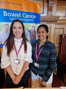 The aim of the Health Promotion Team at St George’s Bowel Cancer Screening Centre is to spread awareness on Bowel Cancer and the Screening Test in order to improve screening uptake across South West London. We do this by engaging with communities and GP surgeries across South West London.